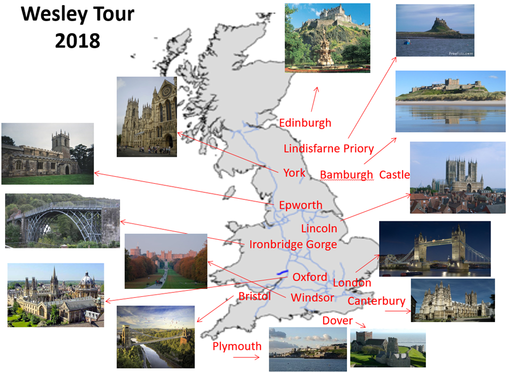 Lincoln College, ChristChurch, St. Mary's Church at Oxford University (Learned about educational background of the Wesley brothers, John, Charles and Samuel Jr.)